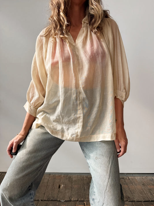 Sheer Chiffon 70s Savvy Ruffle Blouse (XS)