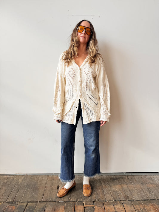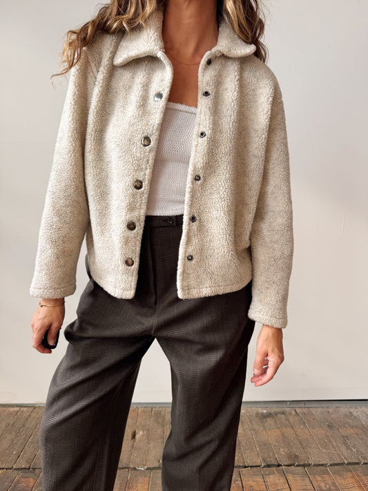 Oatmeal Boucle Snap Front Sweater Jacket (S)