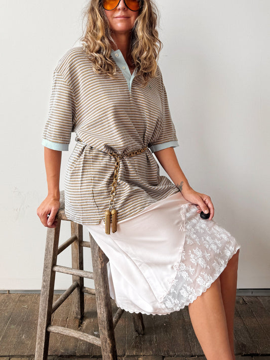 Heavyweight 90s Cotton USA Made Striped Polo Shirt (XL)
