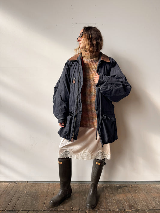 90s Timberland Weathergear Navy and Leather Jacket (Mens L)