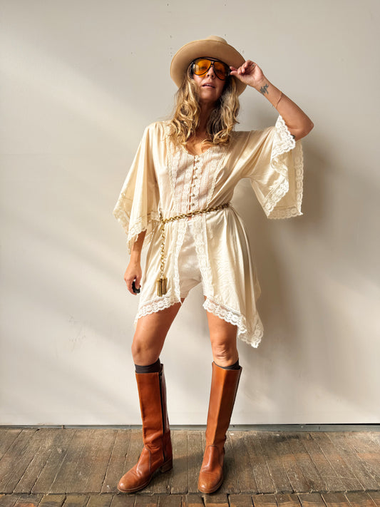 Boho 70s Nylon and Lace Tunic Blouse (M)