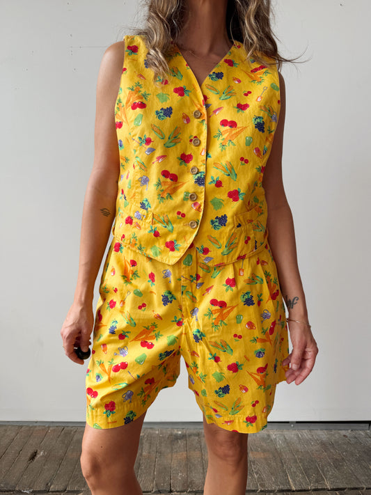 Vegetable Print 90s Vest and Short Set (M)