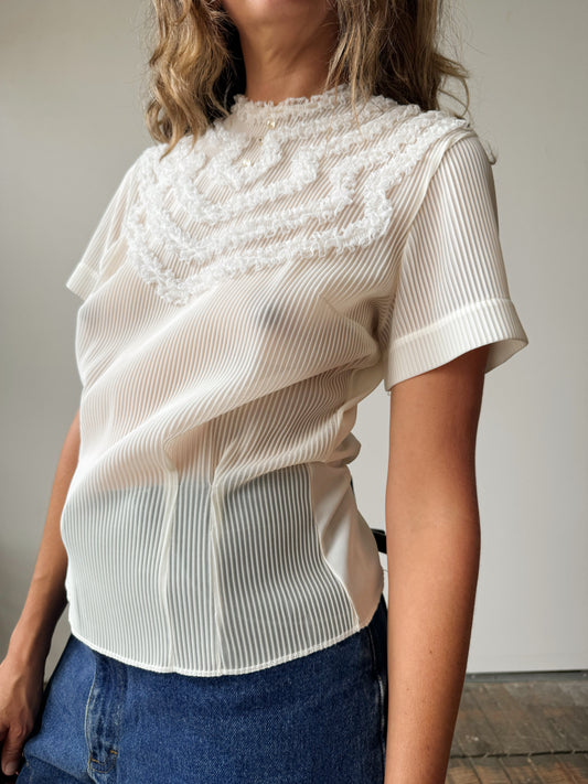 50s Original Jami Nylon Ruffle Blouse (S)