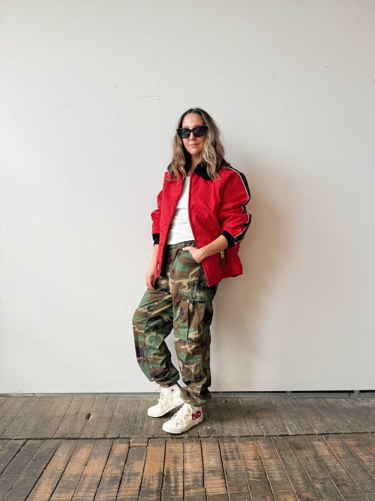 70s Nylon Sportwear Jacket with Faux Fur Collar (Mens L)