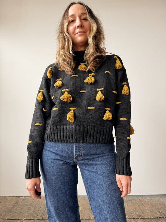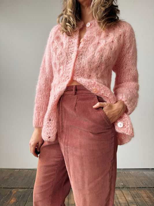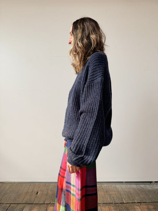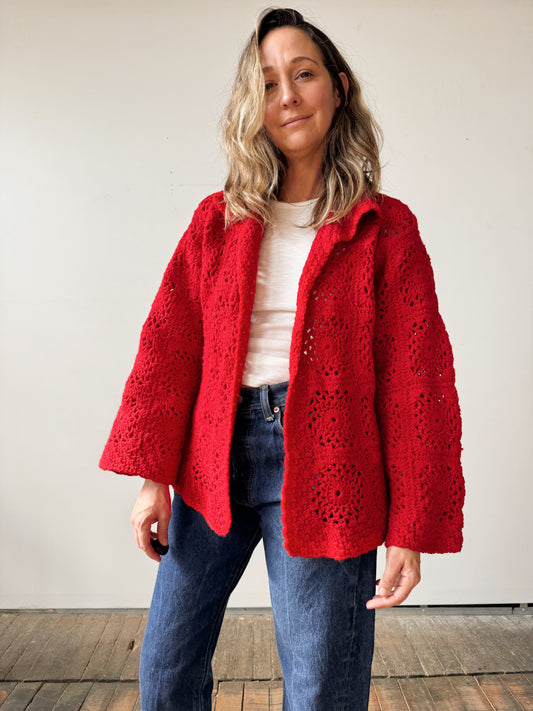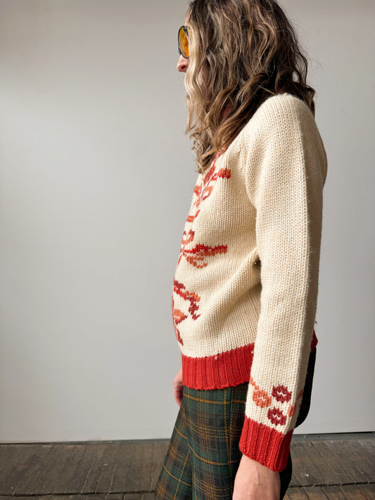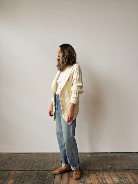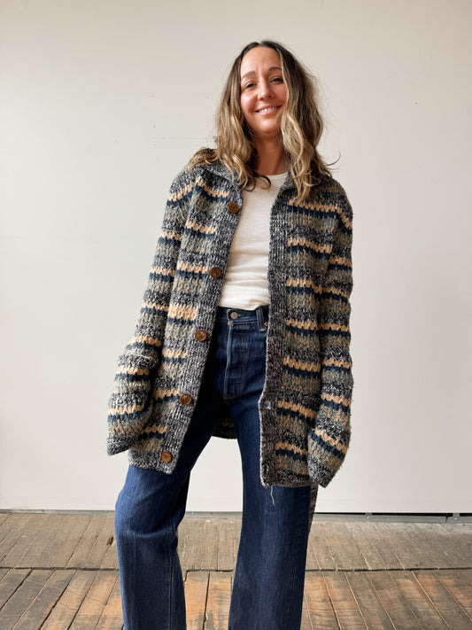 70s Afghan Sweater Cardigan with Bell Sleeve (M)