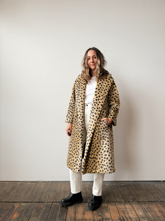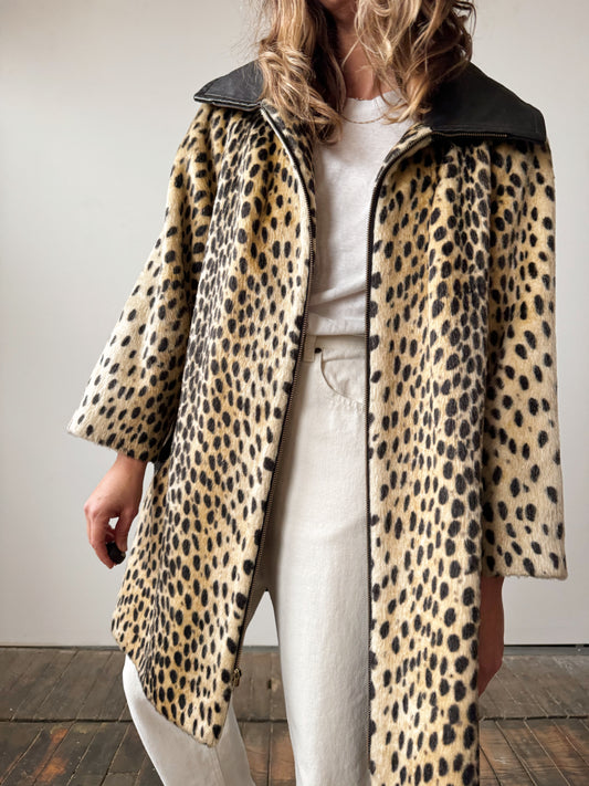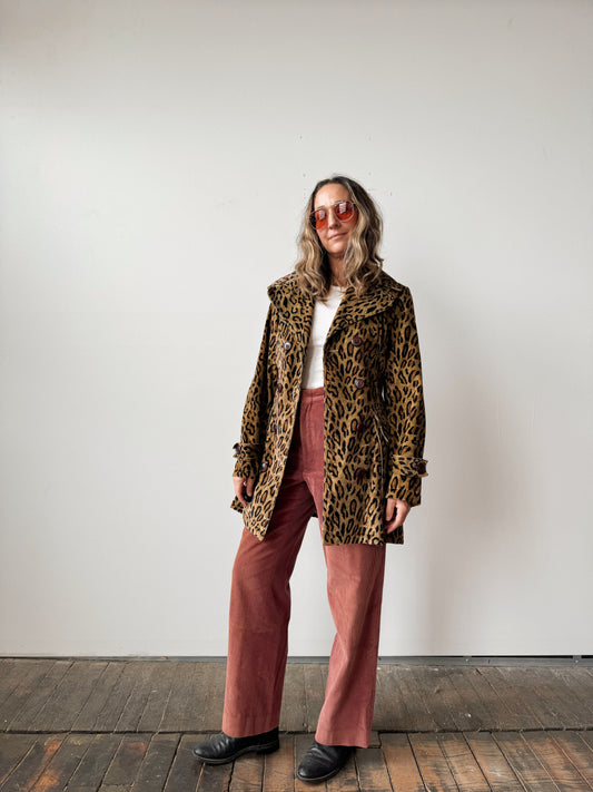 60s Safari Leopard Coat and Leather Swing Coat (M)