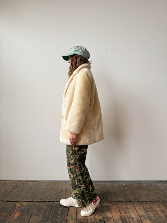 70s Faux Fur Teddy Double-Breasted Coat (M)