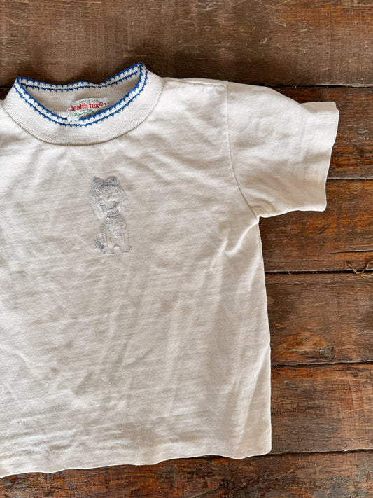 70s Embrodiered Puppy Poodle Girl Vintage Tee (3T)