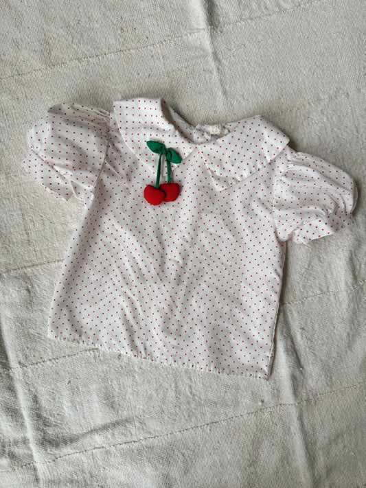 Polka Dot Cherry Applique 80s Blouse (3T)