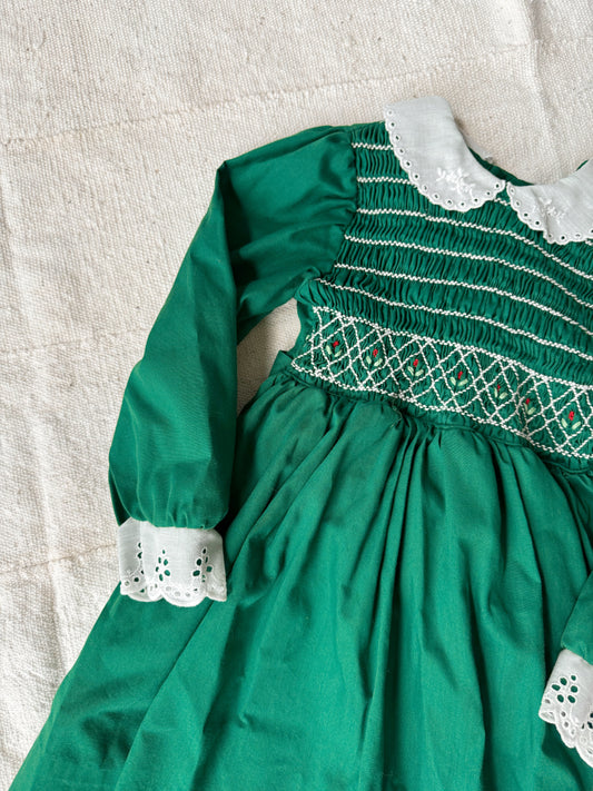 Green 80s Smocked Christmas Dress (3T)