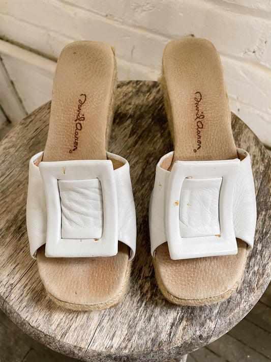 WHITE SATIN MARABOU FEATHER SLIPPER / 6
