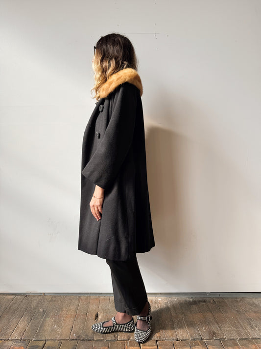 Vintage Miss Topper Wool Coat with Mink Collar (M))