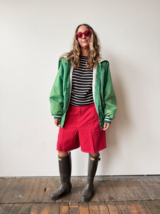 Herringbone Wool Coat with Red Sateen Lining (M)