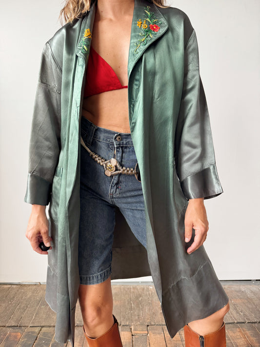 Army Green Liner Jacket Vintage Quilted Nylon Jacket (M)