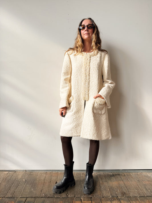 Ivory Bead and Texture Duster Coat, Contemproary (L)