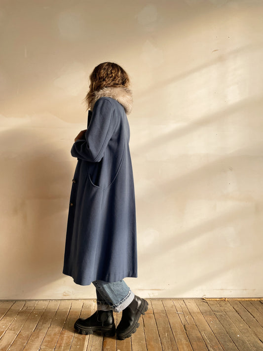 Sold outBlue Swing Coat with Fur Collar