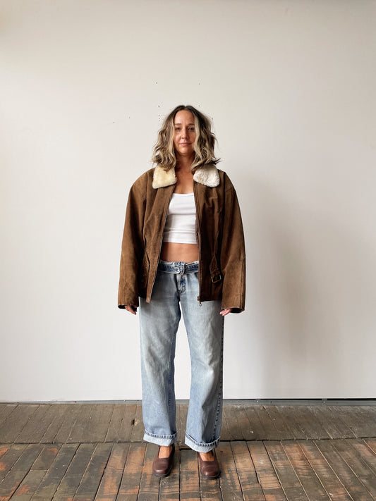 Sold outSuede Fur Collar Cinch Jacket