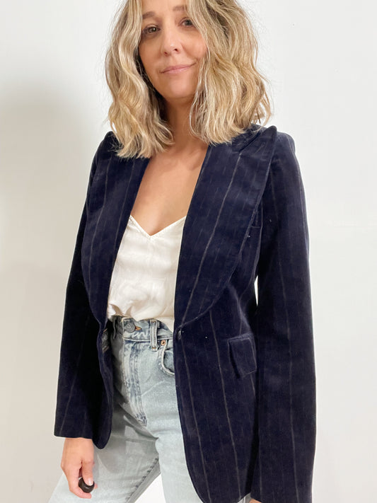 Sold outBlue Velvet Pinstripe Blazer