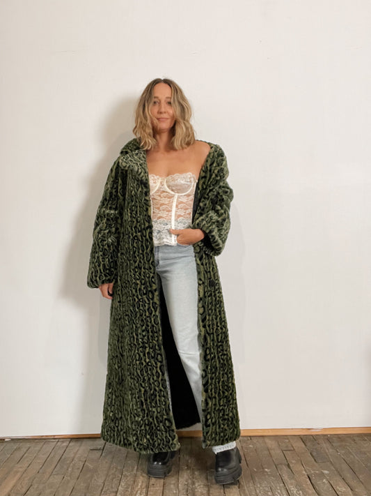 Sold outGreen Leopard Faux Fur Coat