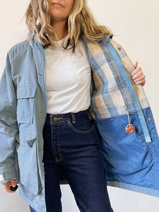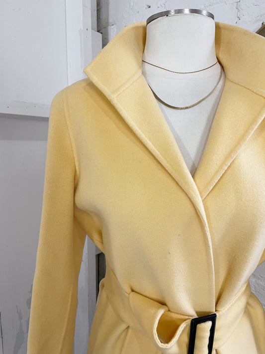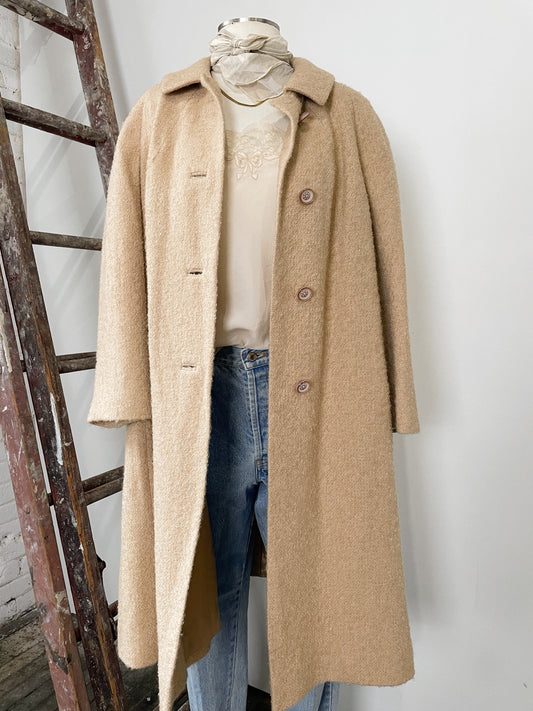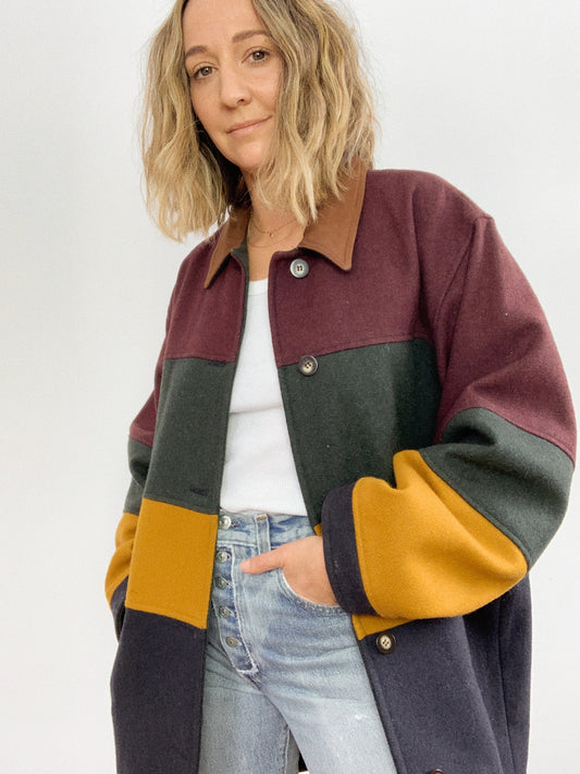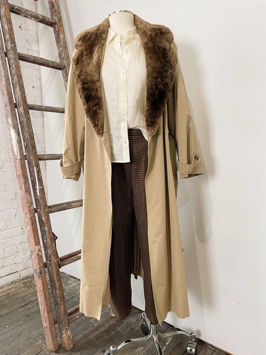 LEATHER COLLAR 90s WOOL COAT / MENS MEDIUM