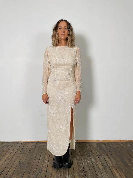Sold outDynasty White and Silk Beaded Dress