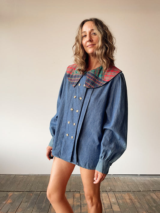 Sold outOversize Plaid Collar Blouse