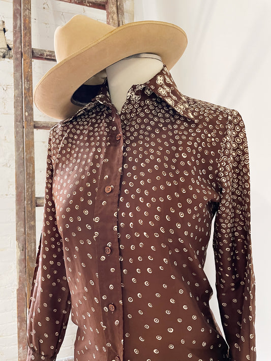 70s Lady Arrow Dripping Florals Blouse