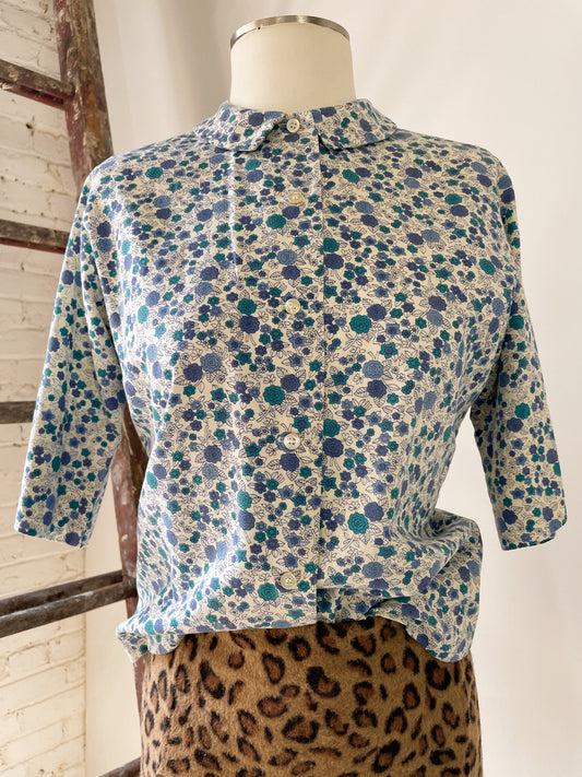 Sold out60s Shapely Blue Floral Blouse