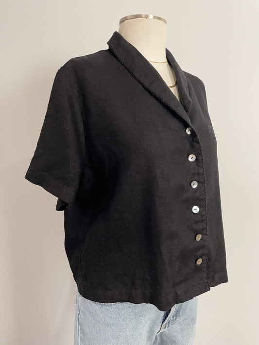 Sold outBlack Linen with Shell Buttons