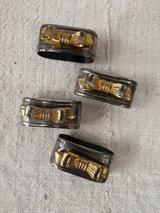 Gold and Silver Tone Bow Napkin Rings, Set of 4