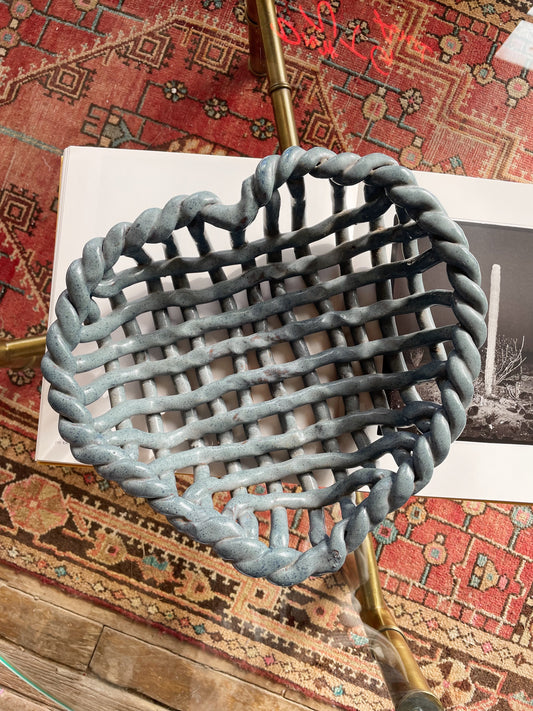 Handmade Basketweave Heart Ceramic Fruit Dish