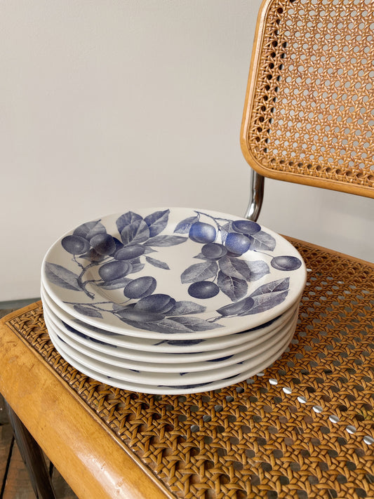 Italian Crate & Barrel Plums 10" Plates, Set of 6