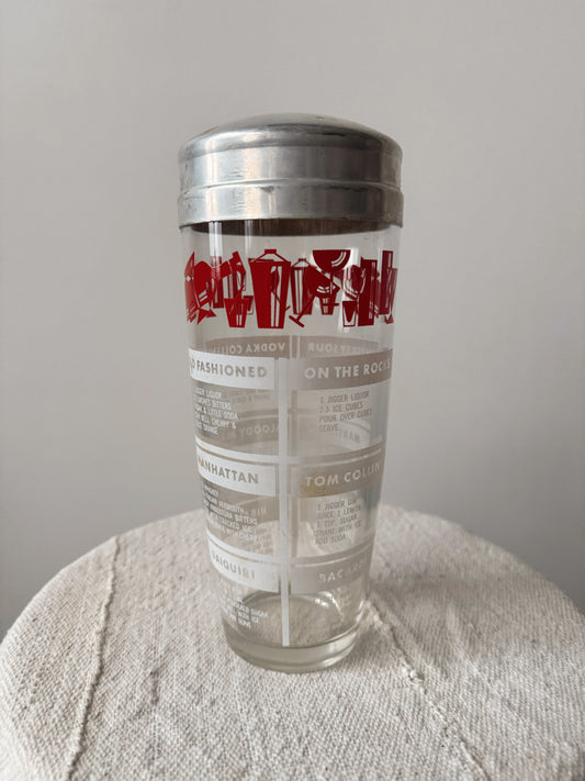 Mid-century Mod Recipe Cocktail Shaker, Glass & Aluminum