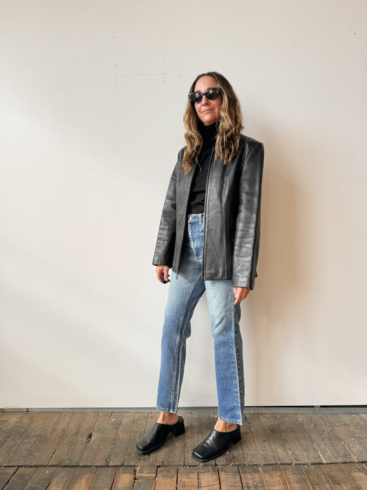 Sold outMinimalist Leather Zip Jacket (M)