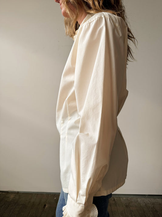 Ruffled Collar Ivory Woven Blouse (L)