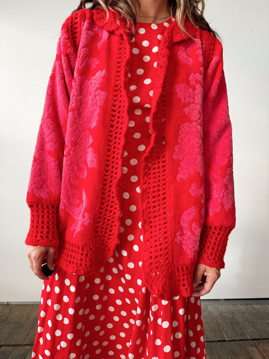 Handmade 70s Crochet and Towel Cardigan