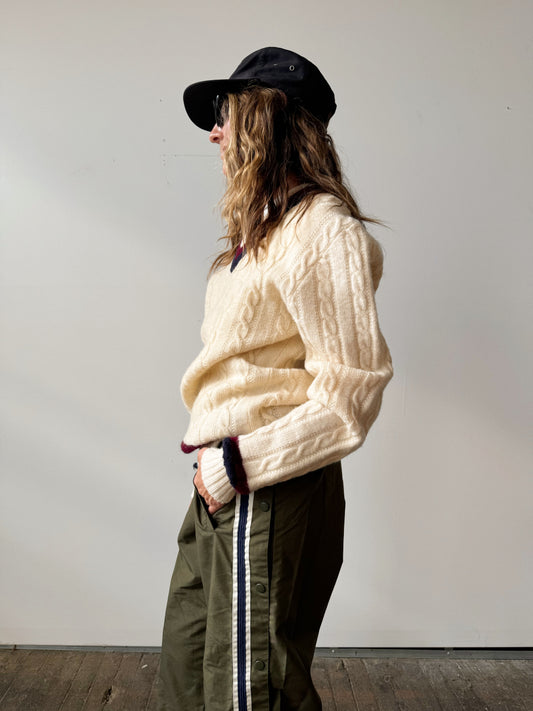 Varsity Cable Knit V-Neck Sweater (M)
