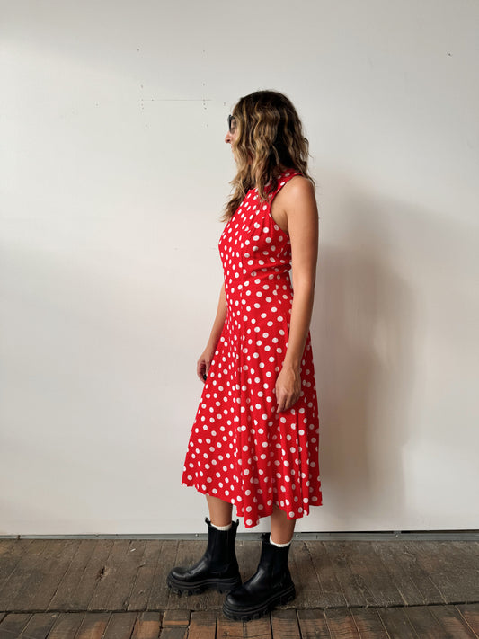 Roberta 90s Red Polka Dot Dress (M)