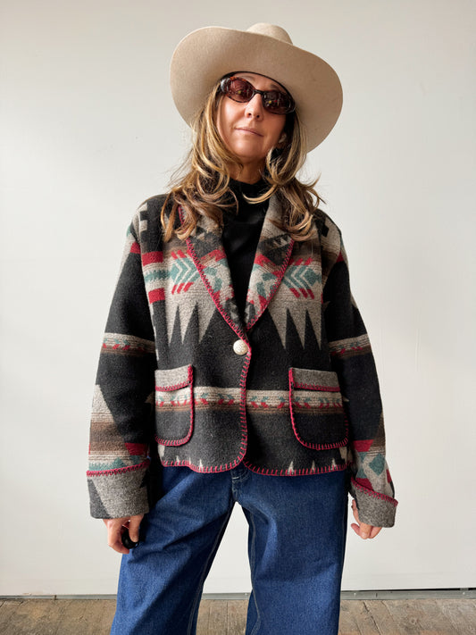 Blanket Jacket Southwestern Print Coat Wool Blend (L)