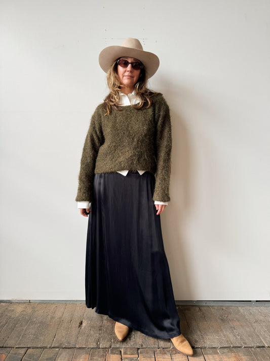 Sold out90s Maxi Black Sateen Skirt (M)