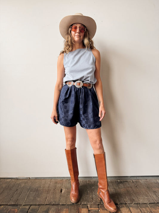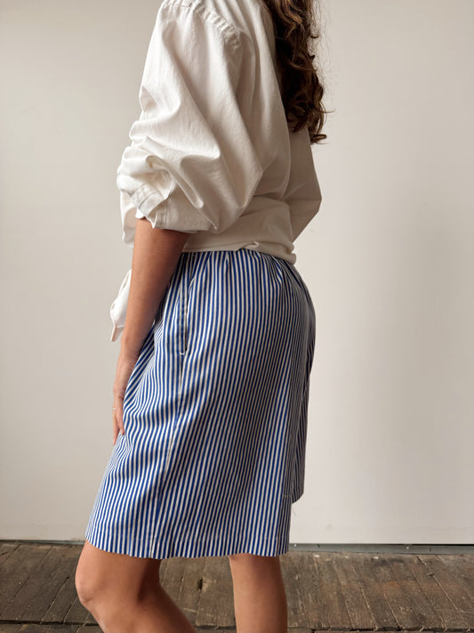 Striped Blue Elastic 80s Long Shorts (M)