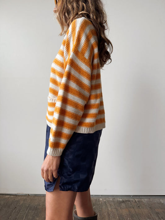 60s Letterman Knit Cardigan Sweater (M)