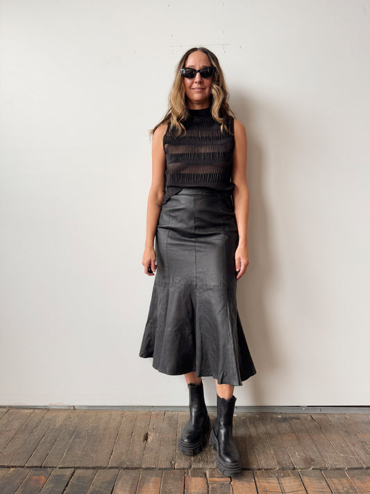 Leather Flutter 90s Midi Skirt (25")