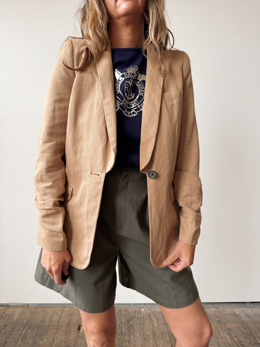Camel Ruched Sleeve Blazer (S)