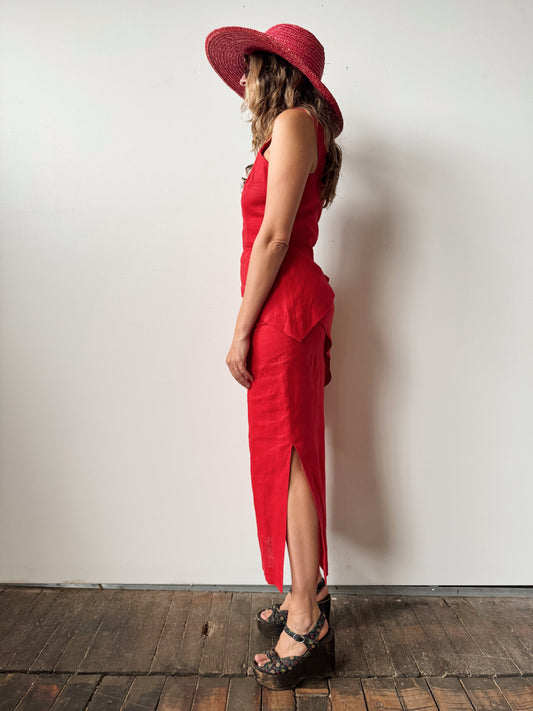 Infinitif Paris Linen Red Tiered 80s Dress (M)