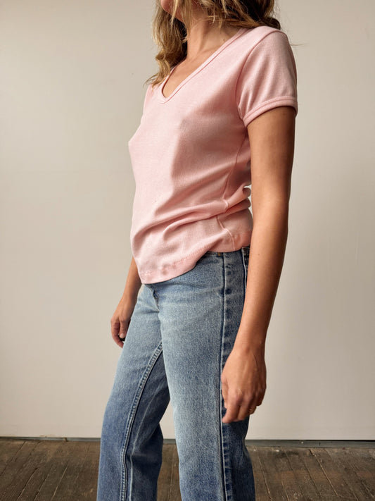 70s Baby Pink V-Neck Tee (S)