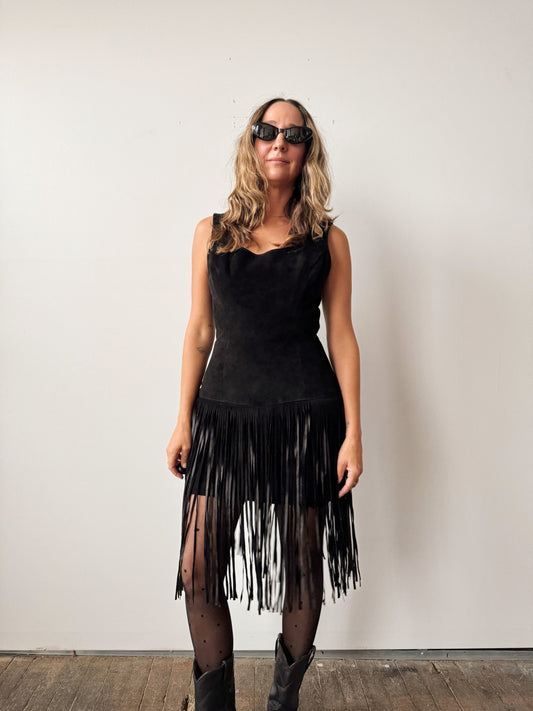 Sold outSuede Fringe 90s Dress (M)