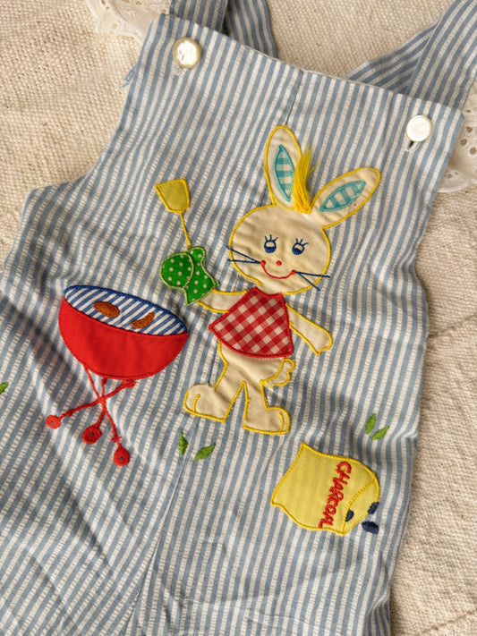80s Seersucker BBQ Bunny Overalls (2T)