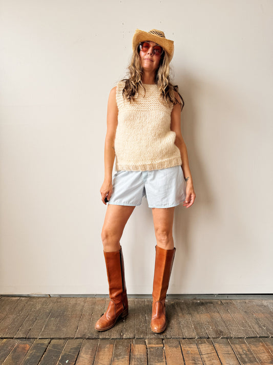 Hand Knit Ivory Mohair Sweater Vest (M)