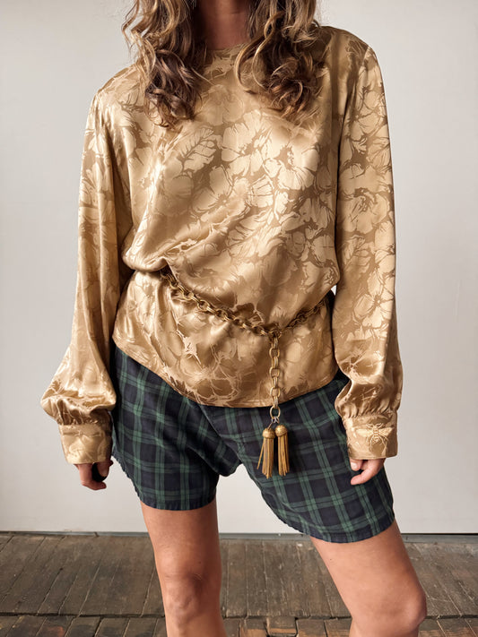 Sold outSilk Taupe Floral 80s Blouse (L)